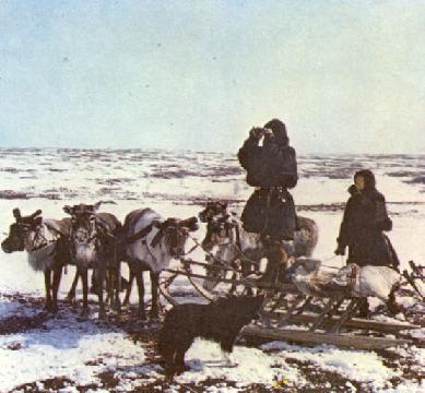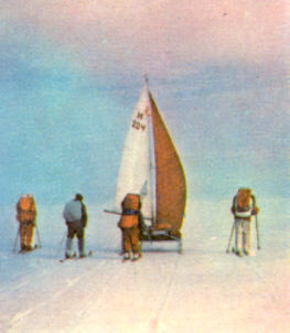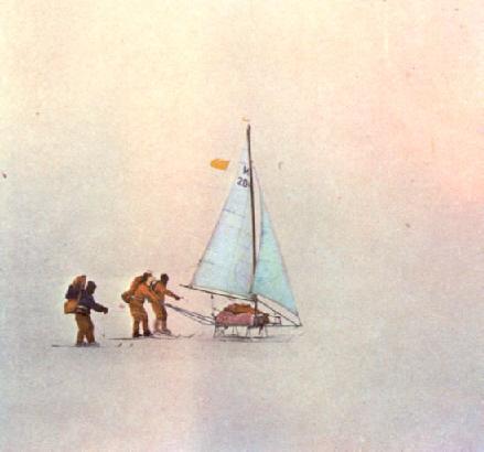 люди поднимают в тундре паруса и мчатся на них, как некогда Нансен через