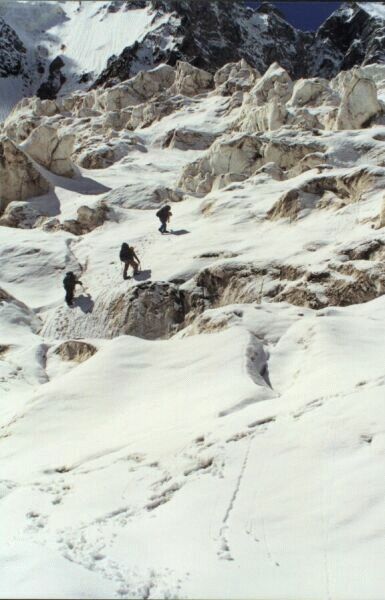 предвершинные обрывы 6987, а сама седловина немного правее по склону. Пройдя