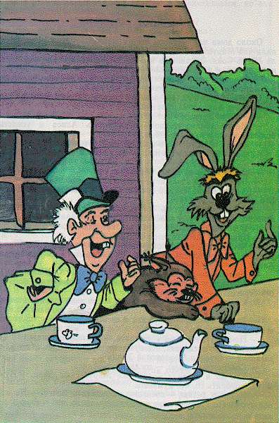 послышался звон посуды--это Мартовский Заяц поил своих друзей