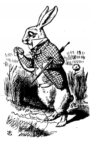 Вдруг мимо пробежал белый кролик с красными глазами.