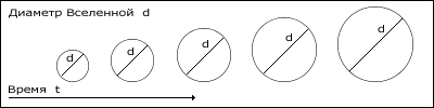 картина некоего ряда постоянно увеличивающихся во времени в своем диаметре