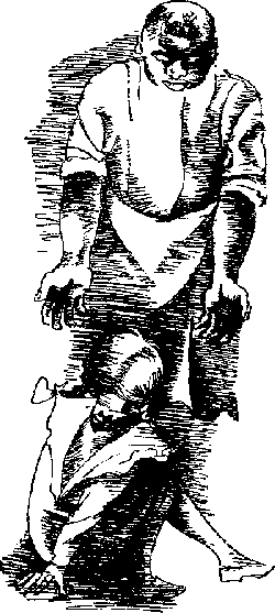 хлебные корки. Отбросы завязывают в мешки вместе с грузом -- кирпичинами, --
