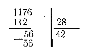 Итак, в частном четыре десятка и две единицы. МСLХХVI : XXVIII = ХLII.