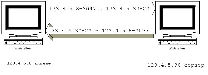 Добавление фильтрации по портам TCP и UDP к фильтрации по IP-адресам дает большую гибкость. Напомним главу 1, в которой говорилось, что сервера, такие как демон TELNET, связаны обычно с конкретными портами, такими как порт 23 для TELNET. Если брандмауэр может блокировать соединения TCP или UDP к или от определенных портов, то можно реализовать политику, при которой определенные виды соединений могут быть осуществлены только с конкретными хостами, но не с другими. Например, организация может захотеть блокировать все входящие соединения для всех хостов, кроме нескольких систем, входящих в состав брандмауэра. Для этих систем могут быть разрешены только определенные сервисы, такие как SMTP для одной системы, и TELNET или FTP для другой. При фильтрации по портам TCP и UDP эта политика может быть легко реализована маршрутизатором с фильтрацией пакетов или хостом с возможностью фильтрации пакетов.