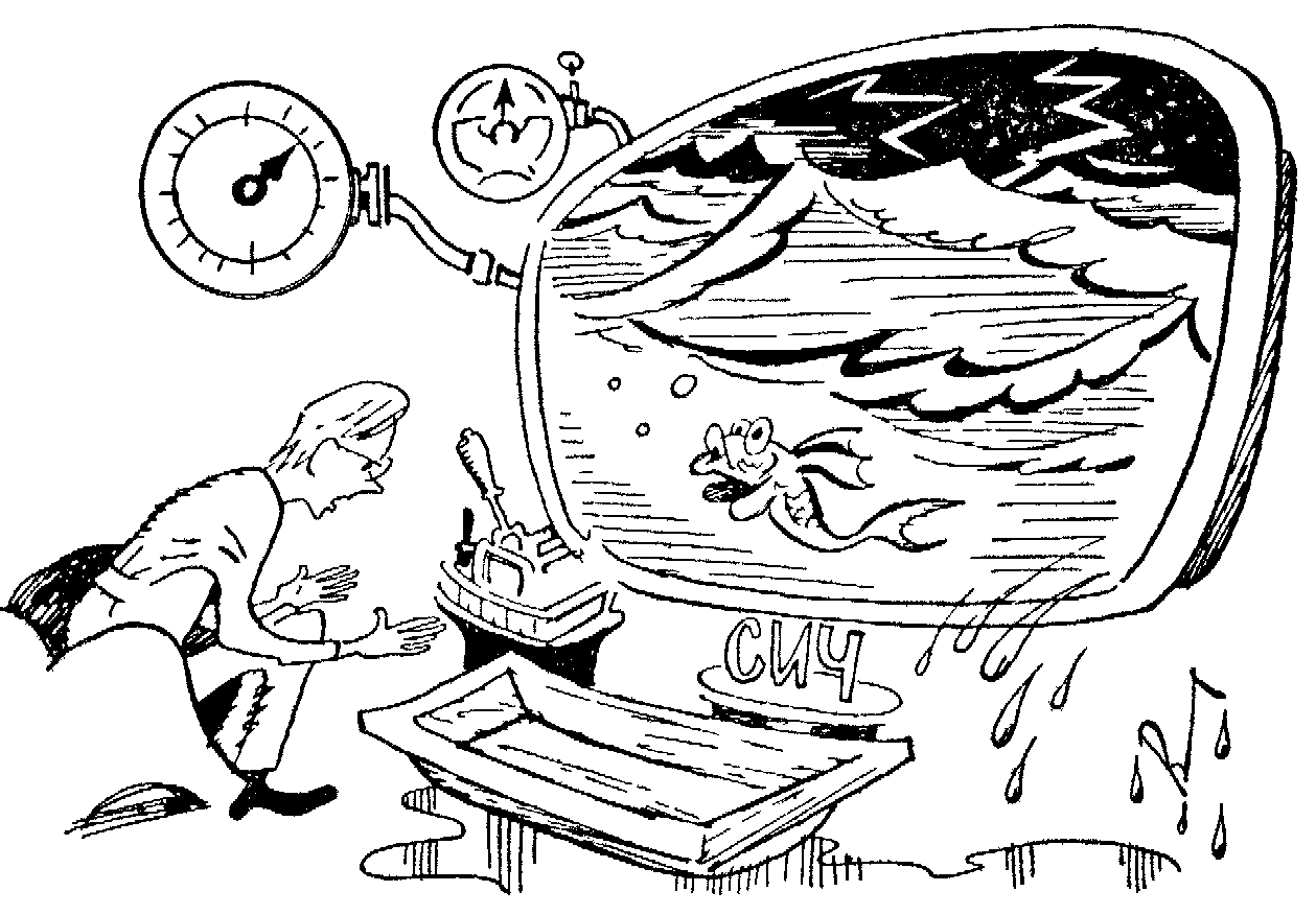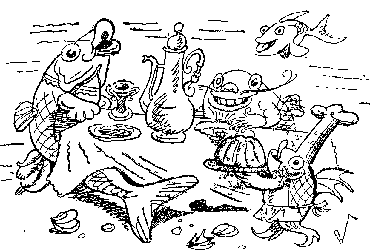 были круглыми, как у карася. Одежда у него была из оранжево-зеленоватой в