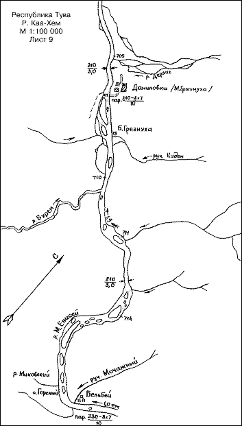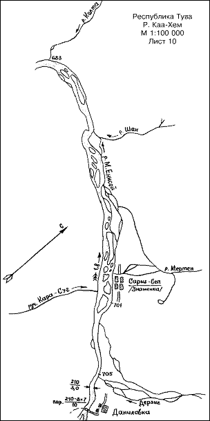 На р. Каа-Хем порогов всего несколько штук, разделенных протяженными плесами. Все они имеют собственные имена.