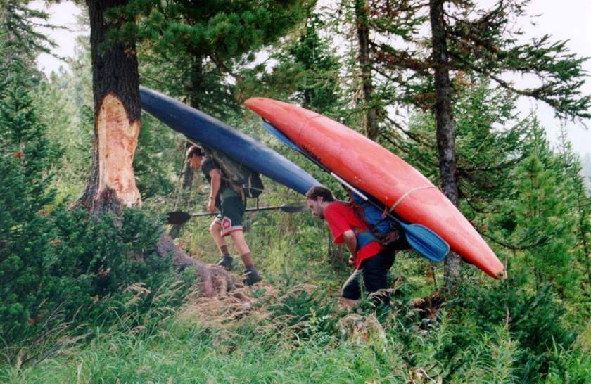 остальным пришлось впрягаться и перемещать каяки методом