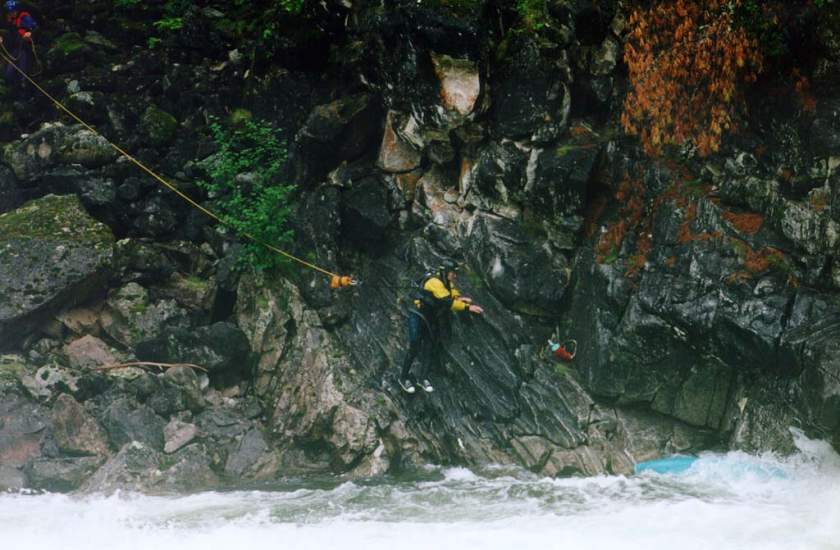 страховку. Каякер, прошедший порог, менял одного из страхующих,