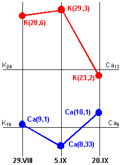 Изменения величин "K" и "Ca"