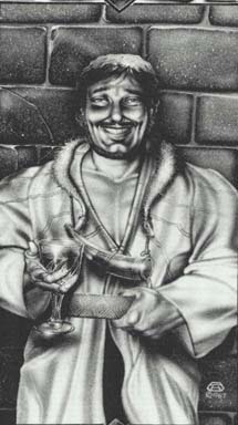Жерард(Защитник морей Золотого Круга).Зеленые глаза, черные волосы, короткая борода и светлые усы, выглядит похожим на Корвина, но крупнее его и с более тяжелой челюстью. Громоздкий, могучий и устрашающий, Жерар гораздо более искренен, чем любой из его братьев и сестер, и он знает пределы своих возможностей. Он более доверчив к другим и бесспорно лоялен по отношению к Амберу. Жерар был тем, кто настаивал на заботе о Бранде, пока безопасность его брата не была бы гарантирована, и все же он не колебался перед тем, как присоединиться к Корвину против Бранда, когда заговор последнего был доказан окончательно. Он - на стороне Амбера, просто и честно. |