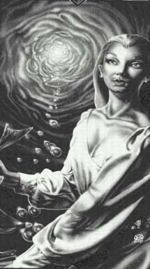 Виалла(Королева) 5'1 ", тонкая талия , брюнетка, прекрасно выглядит и мягко говорит. Королева так много делает для того, чтобы умерить пыл короля, что, вероятнее всего, ответственность за его внезапную и драматическую зрелость лежит на ней. Она спокойно относиться к событиям в Янтаре, предпочитая вместо интриг полностью поддерживать действия Рэндома. Она определенно любит своего мужа, и, ко всеобщему удивлению, муж любит ее столь же сильно Виалла слепа, и она - скульптор. Ее произведения восхищают простотой, которая выдает величайшее внимание автора к деталям, и этим противоречием, кажется, Виалла достигает уникального художественного воздействия. Через спокойствие своего искусства и через спокойствие своей личности Виалла без посторонней помощи, но косвенно изменят атмосферу замка Амбера. Врагов у нее нет. Жена Рэндома, она - слепой скульптор, на которой он должен был жениться в Ребме, но с тех пор влюбился в нее. Она - хороший врач. Имеет странные способности, несмотря на невозможность использования ею карт. |
